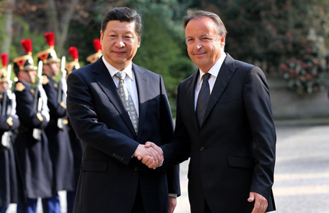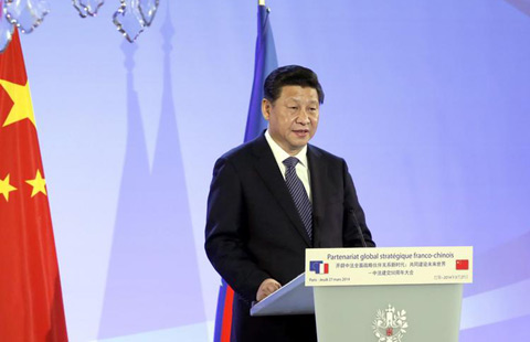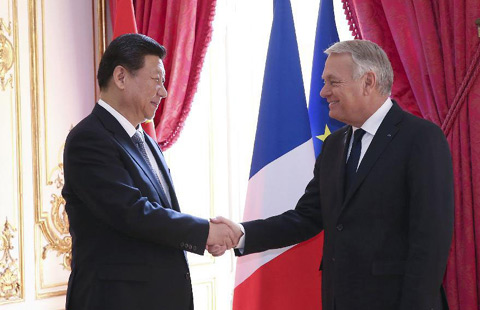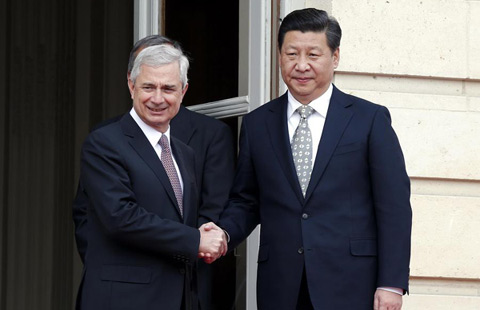 Chinese President Xi Jinping, who is on a state visit to France, met with French Senate President Jean-Pierre Bel on Thursday.