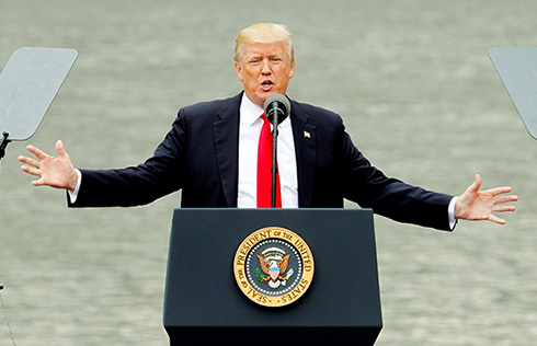 File photo shows US President Donald Trump announces his $1 trillion infrastructure plan to the crowd during a rally along side the Ohio River at the Rivertown Marina in Cincinnati, Ohio, US, June 7, 2017. [Photo/Agencies]